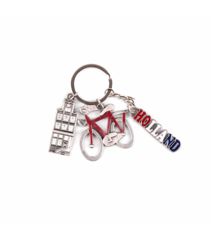 Sleutelhanger met Hollandse bedels, Amsterdam, Grachtenhuisje, Fiets, Holland