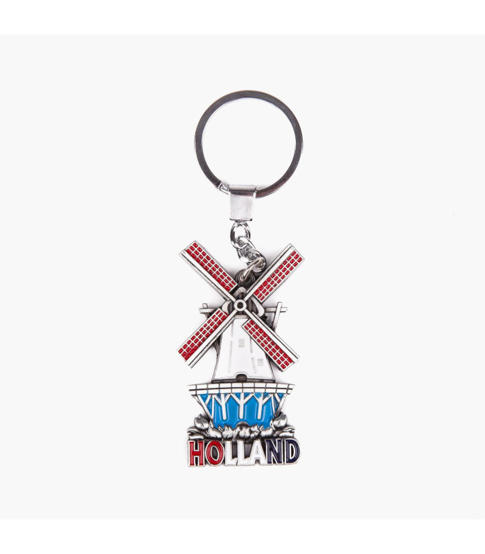 Deze charmante sleutelhanger is gemaakt van tin en heeft de vorm van een klassieke Nederlandse windmolen. De letters 'Holland' sieren de molen, waardoor het een typisch Nederlands souvenir is. Het is een perfect cadeau voor jezelf of iemand anders die van Nederland houdt.