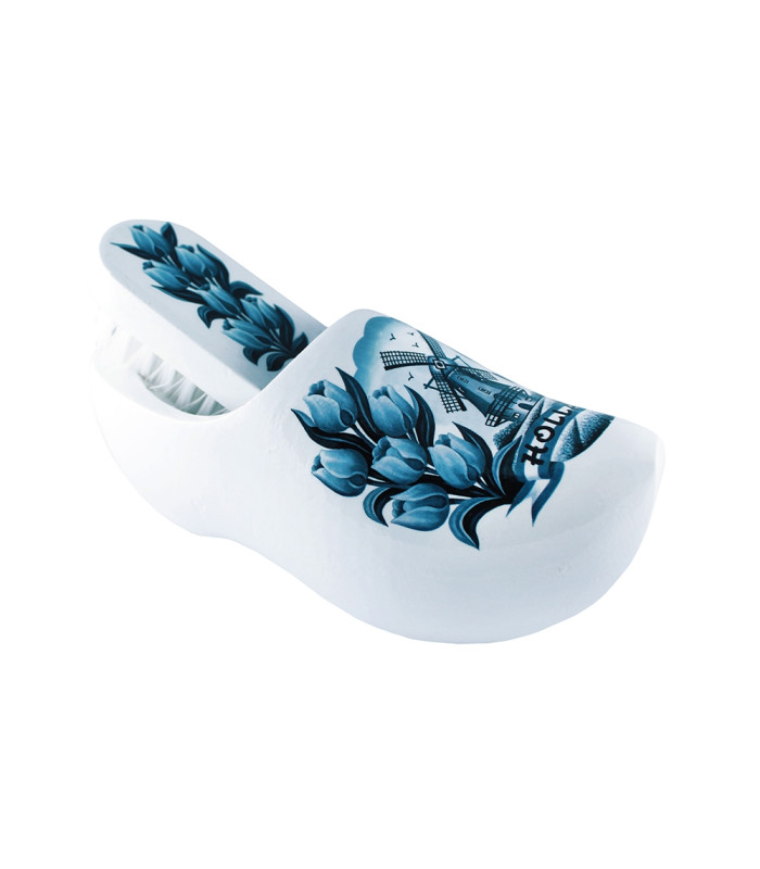 Breng een stukje Holland in huis met dit schattige delftsblauwe klompje. Het is niet alleen een decoratief item, maar ook een praktisch borsteltje. De levendige afbeelding van tulpen en een molen maakt het een echt eyecatcher.