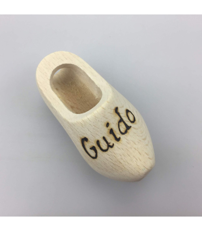 Met dit dasklompje van acht centimeter met naam maak je een boerenzakdoek gemakkelijk om je nek vast. In de lengte is het klompje namelijk doorboord. Door dit gat haal je de gedraaide uiteinden van de boerenzakdoek.