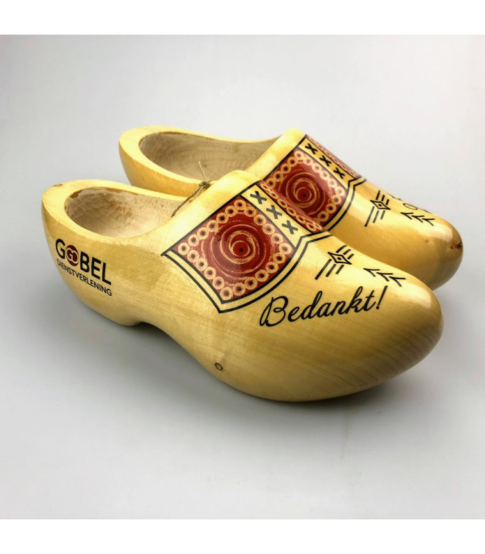 - Het logo komt aan de beide zijkanten achteraan de klompen