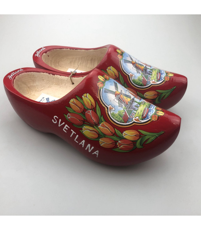 Onderhoud klompen: Met zachte zeep en spons schoonmaken. De lak zal op den duur door het gebruik minder worden, door ze licht te schuren kunt u ze daarna lakken met een blanke lak, maakt niet uit welk merk lak.