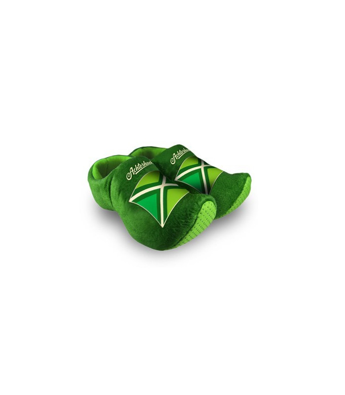 Deze Groene klompsloffen zijn verpakt in een transparant tasje met "Holland" opdruk.