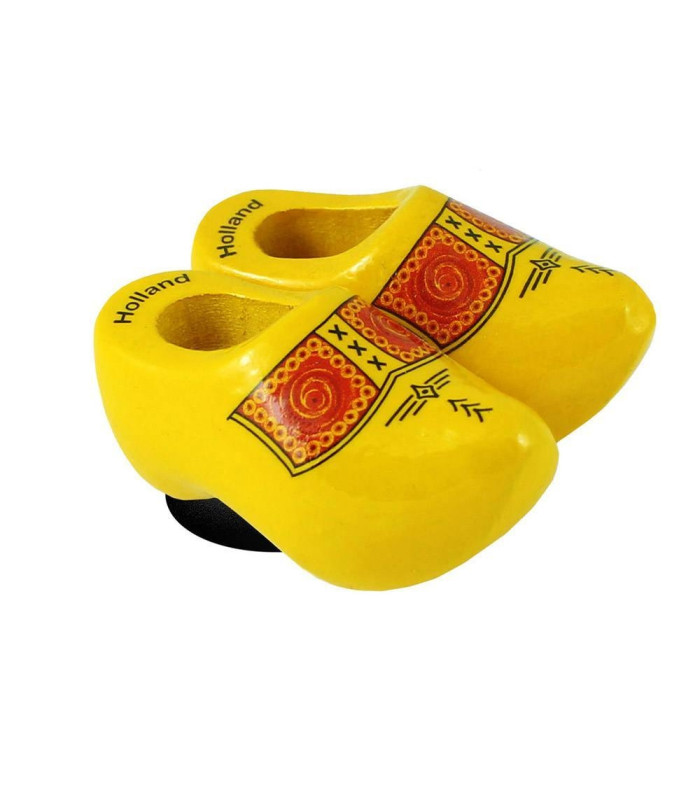 Deze twee klompjes zijn vier centimeter groot en hebben een opdruk van tulpen, een molen, de Nederlandse vlag en de tekst ‘Holland’. Ze hebben aan de onderkant een magneetje.