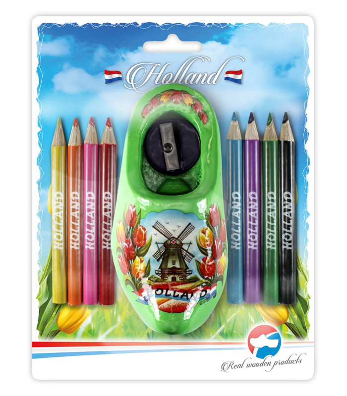 Puntenslijper Groen Molen Tulp + Potloodjes in blisterverpakking