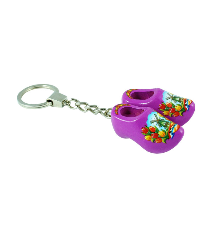 Sleutelhanger met 2 klompjes van 4 cm Paars