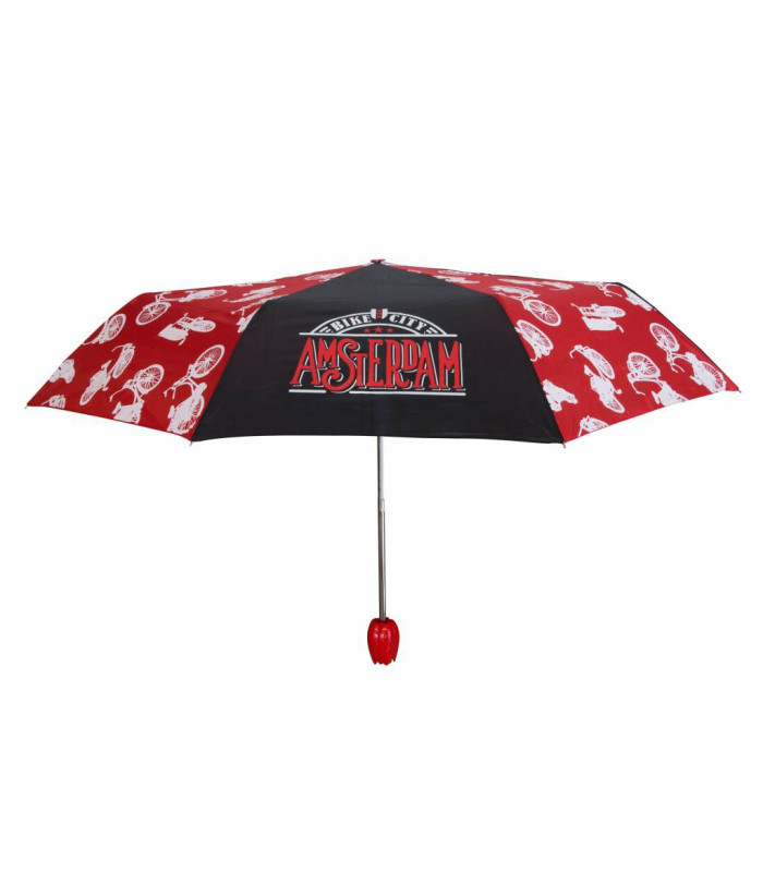 Bij een echte Hollandse lucht hoort op z’n tijd ook een flinke regenbui. Een leuk souvenir of cadeau! Vouwparaplu met fietsen Amsterdam.