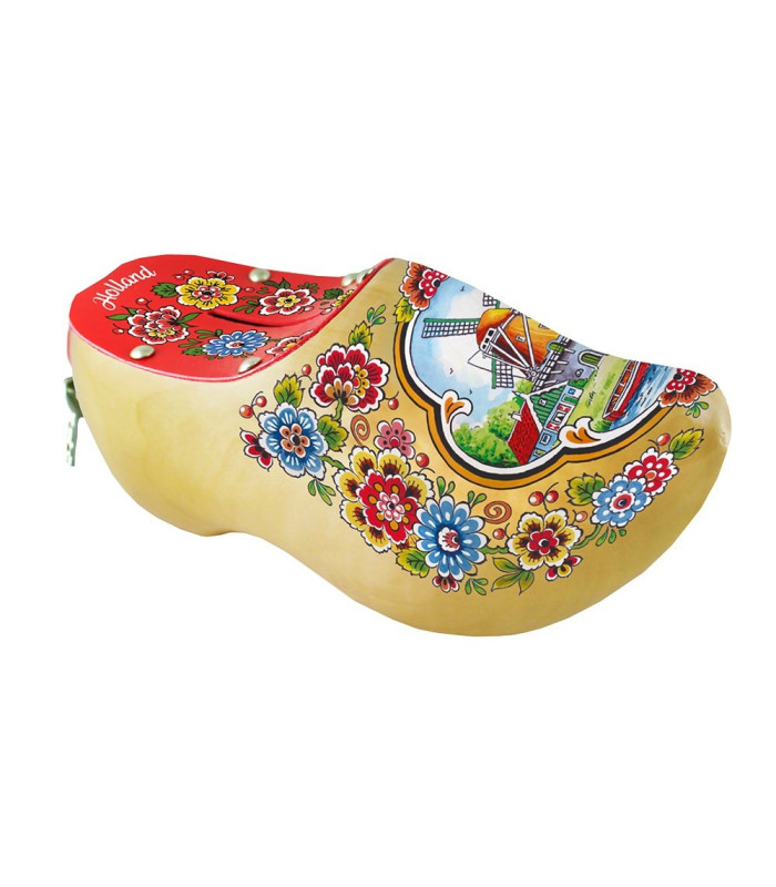 Spaarpot klompje gelakt met tulpen en molen 14 cm