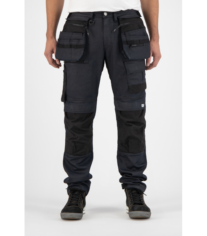 De 247 Jeans Bull S40 dark blue coated stretch denim (N609S40001) is 1 van de meest robuuste en functionele denimwerkbroek van het moment. Door multifunctionele zakken is deze broek voor iedere klus een musthave. Door het gebruik van cordura is deze jeans op kwetsbare plekken extra verstevigd en op plekken waar je extra comfort wil is gebruik gemaakt van 4way stretch. Dit zorgt voor nog meer bewegingsvrijheid. De holsterzakken aan de voorkant zijn afneembaar wat betekend dat je je zakken niet meer hoeft leeg te maken voor het wassen. Deze jeans geeft je op het werk een professionele en stoere uitstraling.